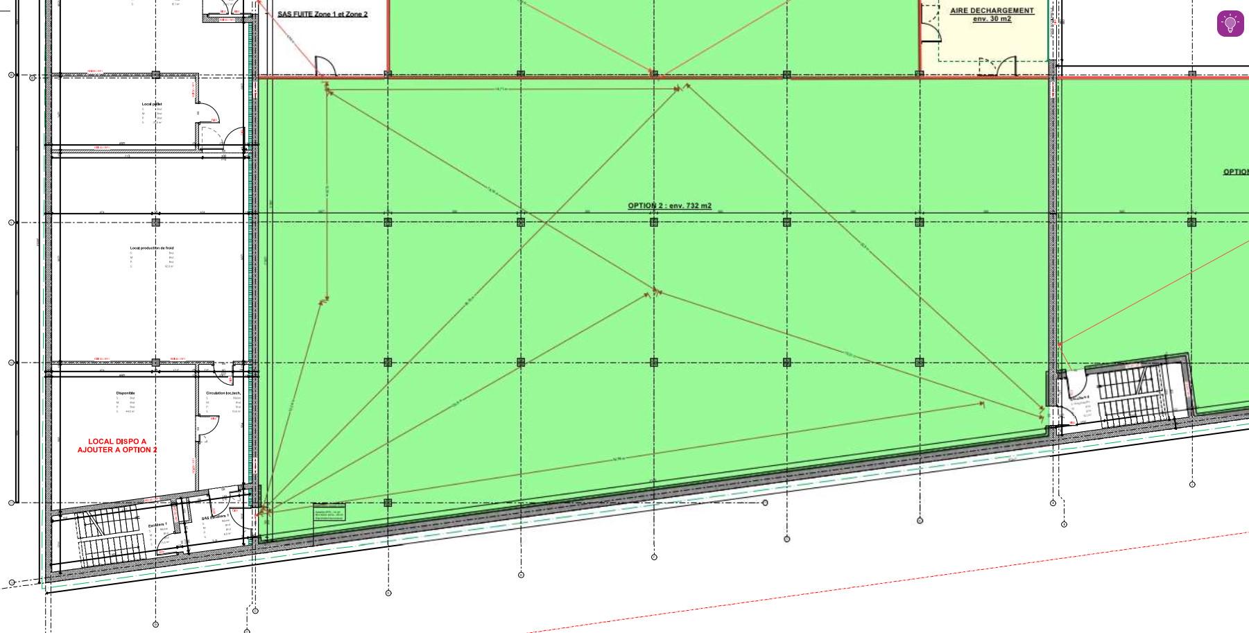 • surface en deux parties indépendantes de 732 m² et de 40 m² hauteur 3.40 m.