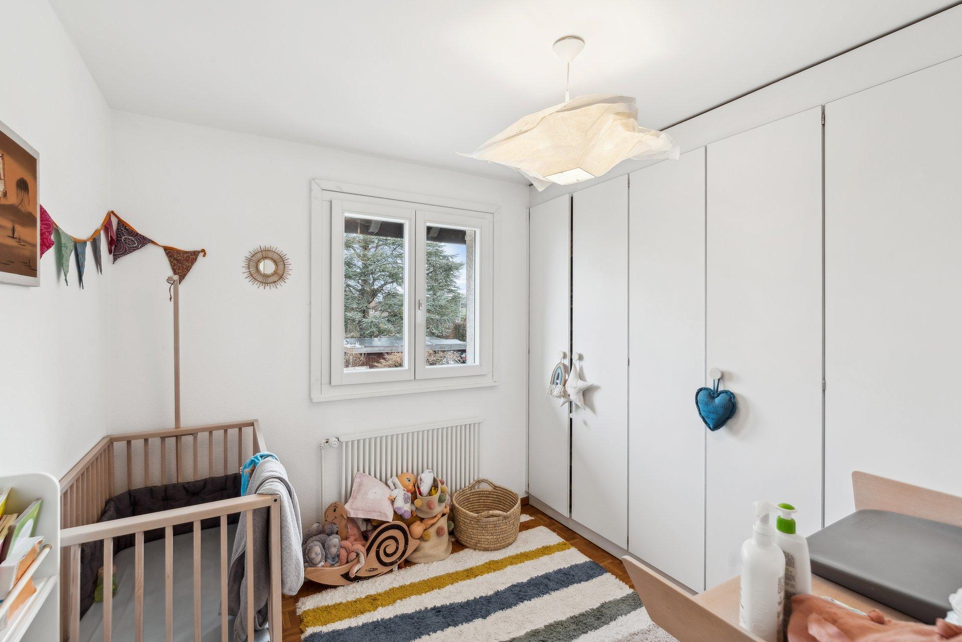 Deux chambres supplémentaires pour les enfants, dont une avec balcon et l’autre avec rangements intégrés, garantissent confort et fonctionnalité.